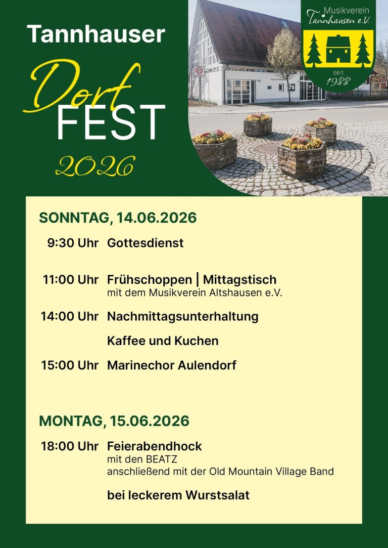 Am Sonntag den 14.06. und Montag den 15.06.2026 laden wir Sie herzlich zu unserem Dorffest ein.